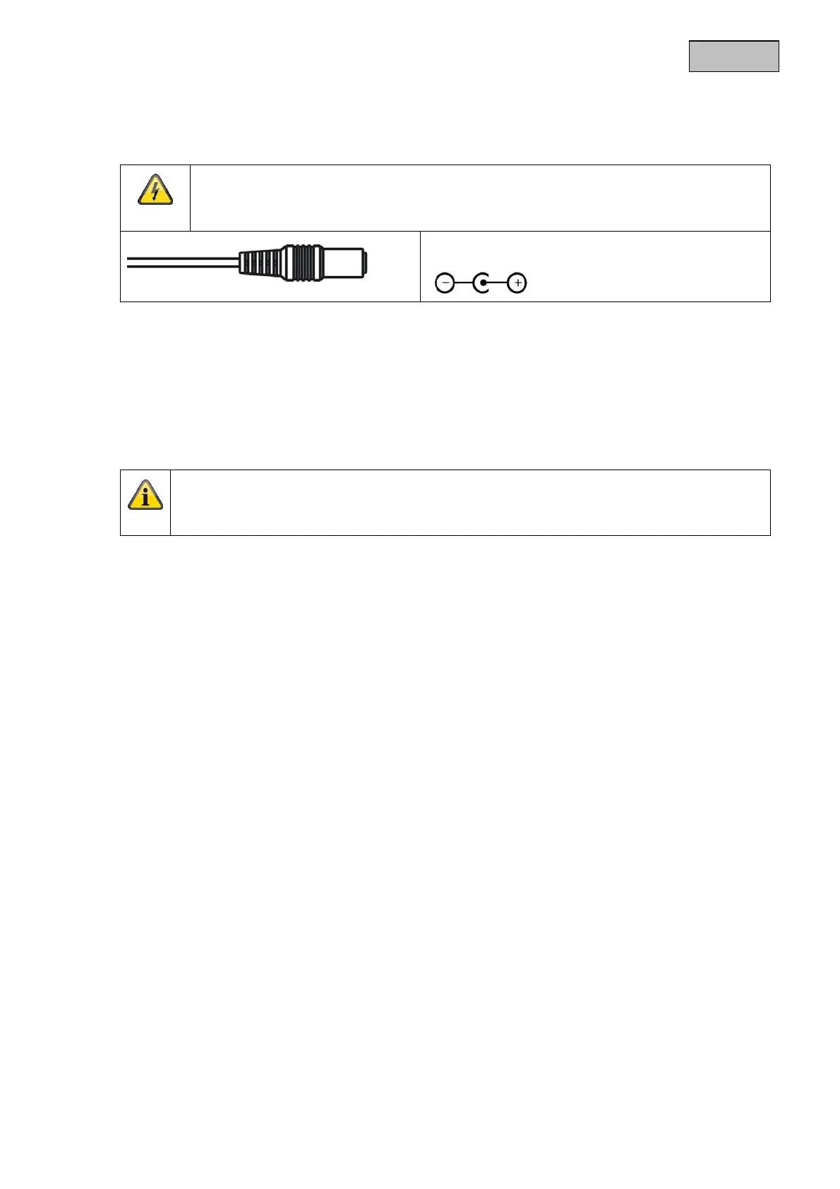Kameraerne kræver en 12 VDC spændingsforsyning. Jævnspændingens polaritet skal overholdes!
