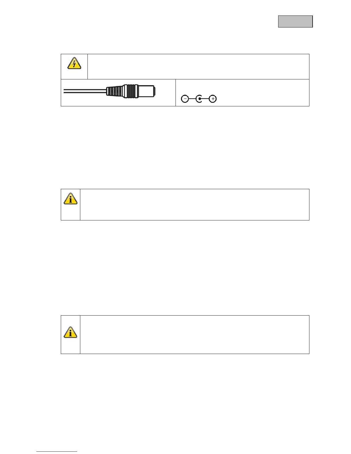 The cameras require a 12 V DC power supply. The polarity of the DC voltage supply must be observed!