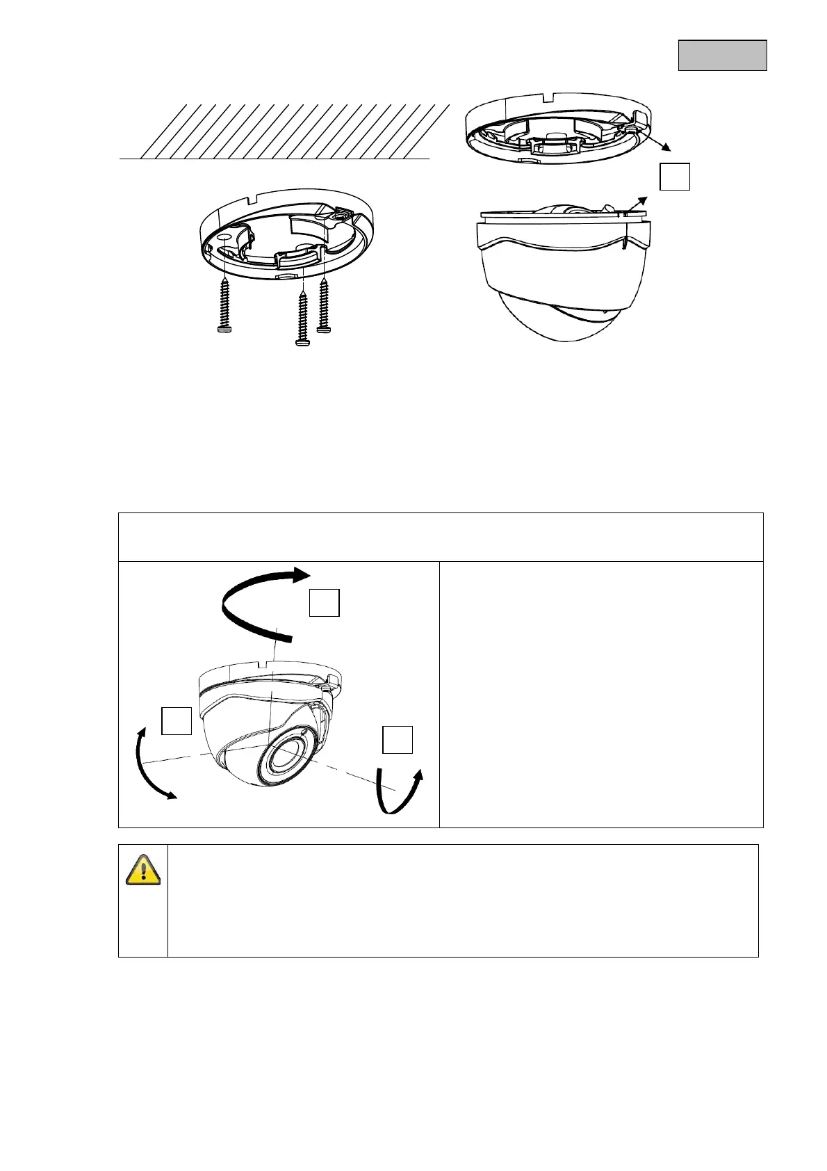 centrale de la caméra peut maintenant être réglée sur 3 axes. Resserrez la vis de fixation.