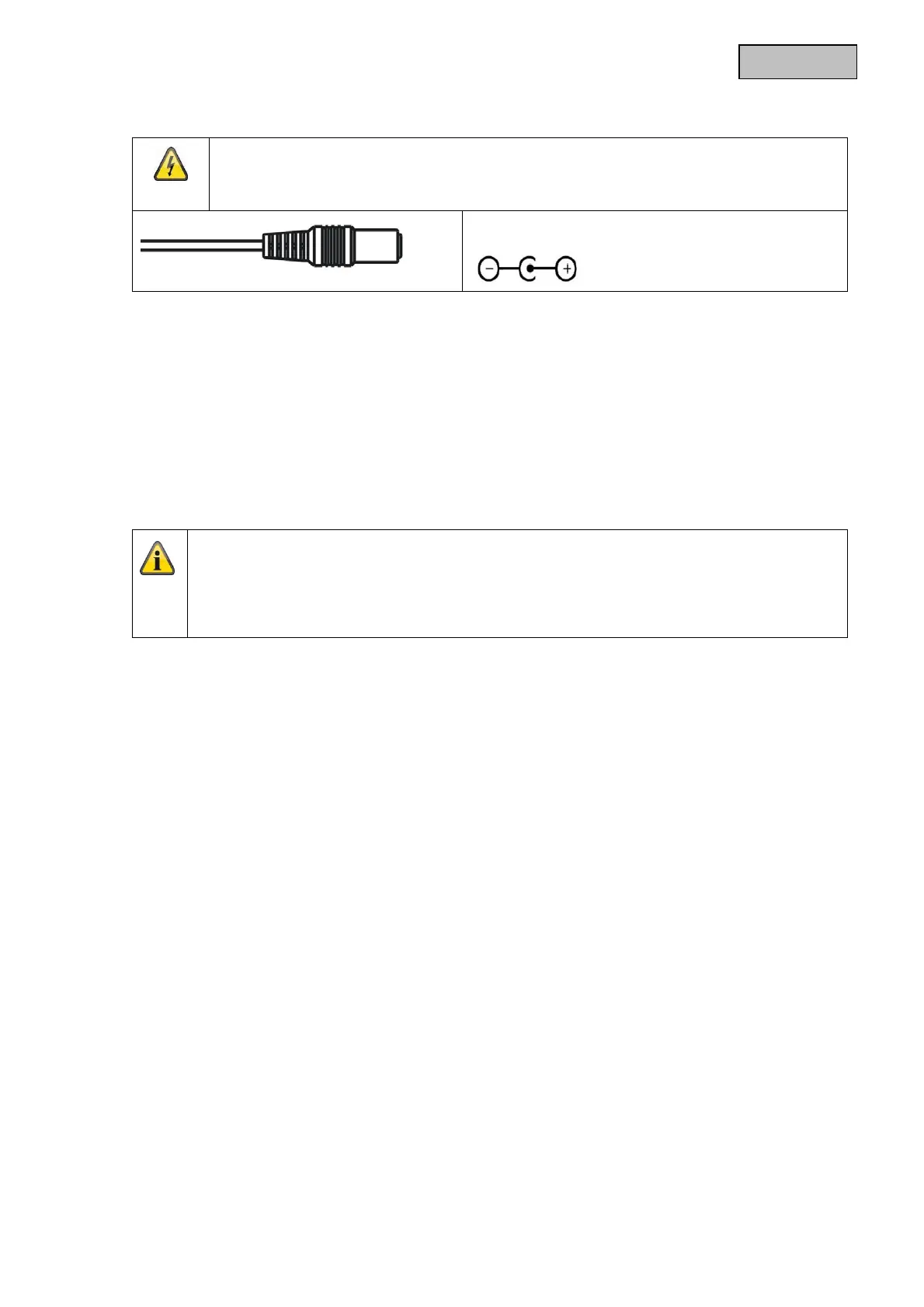 De camera's worden gevoed met 12 VDC-voedingsspanning. De polariteit van de gelijkspanning moet in