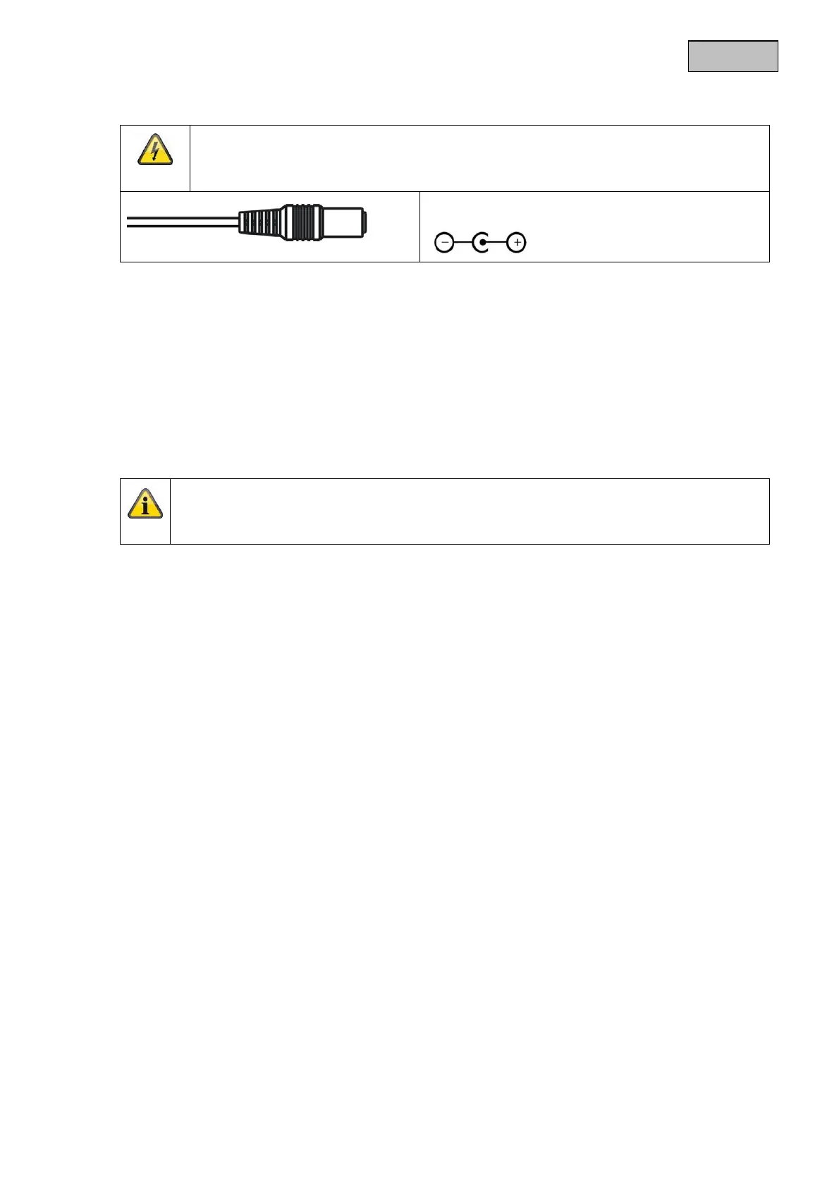 Kameraerne kræver en 12 VDC spændingsforsyning. Jævnspændingens polaritet skal overholdes!