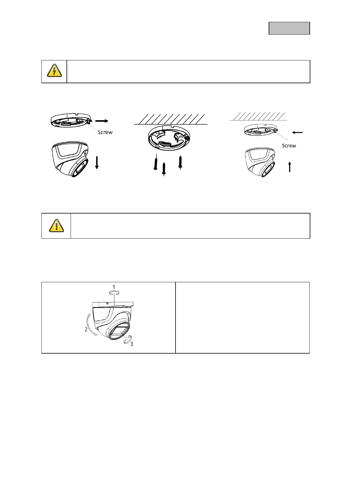 locking plate. Use the wall plugs and screws provided to mount the camera base plate in place.