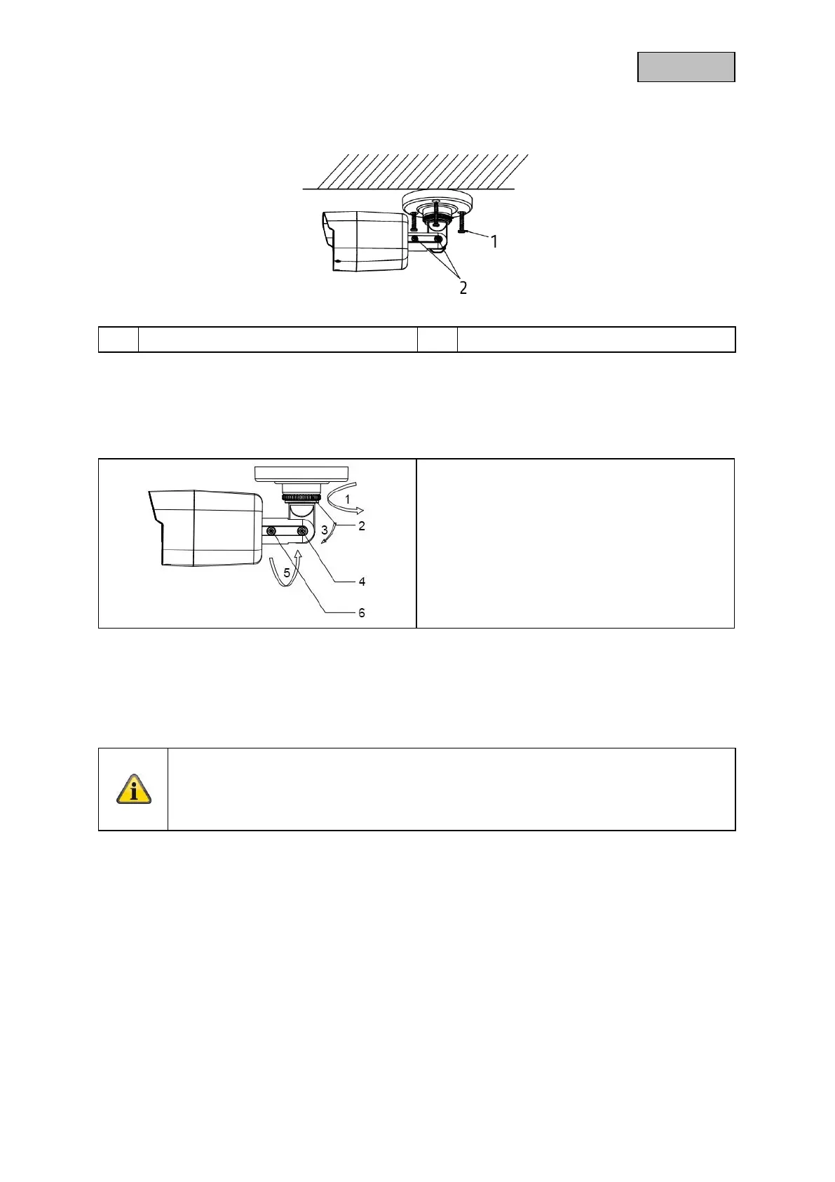 Glue the drilling template provided where you intend to install the camera. Drill the required holes.