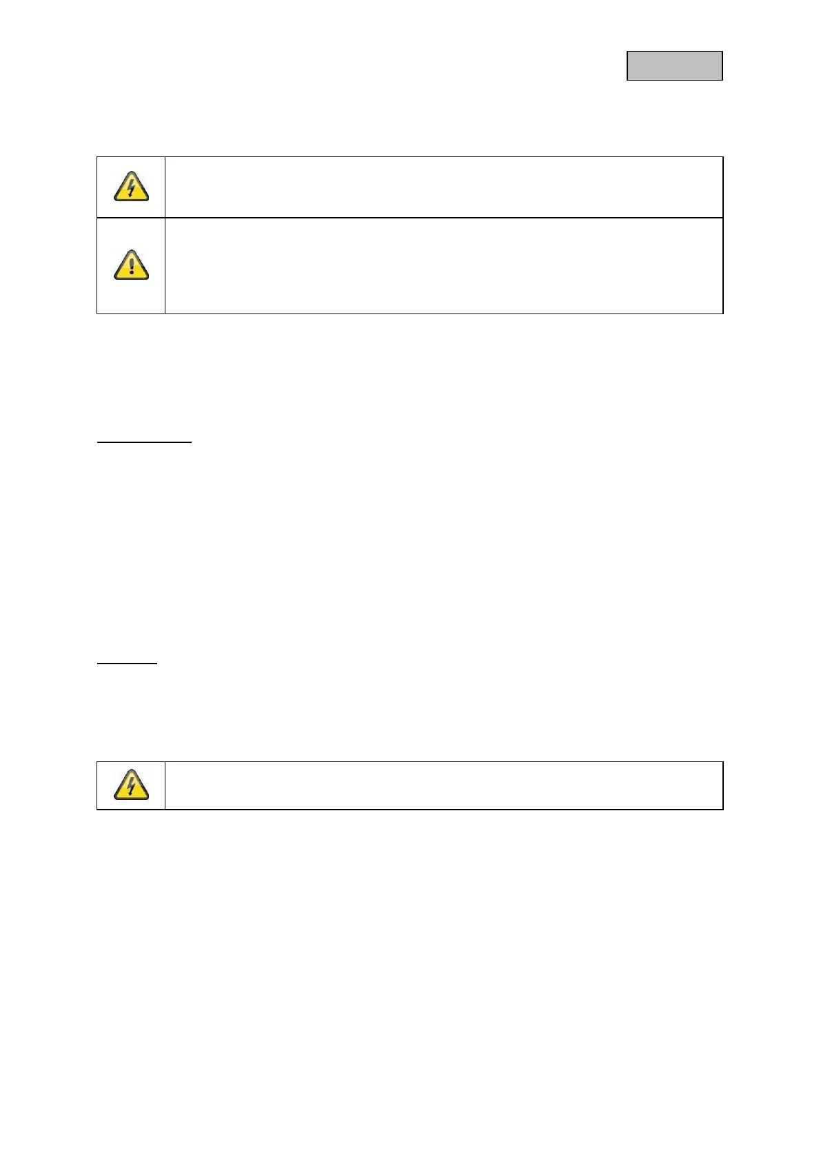 Åbn aldrig husetudstyr eller tilbehør, hvis det ikke er kvet. Da der altid er livsfare