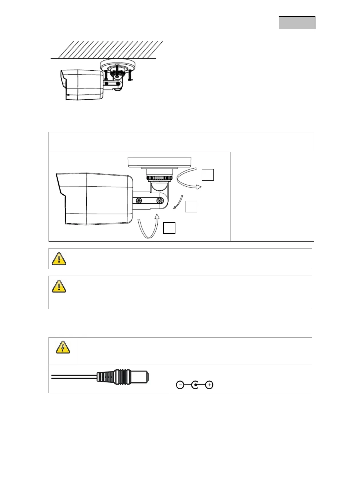 Les caméras exigent une alimentation électrique 12 V CC. Tenez compte de la polarité de l’alimentation