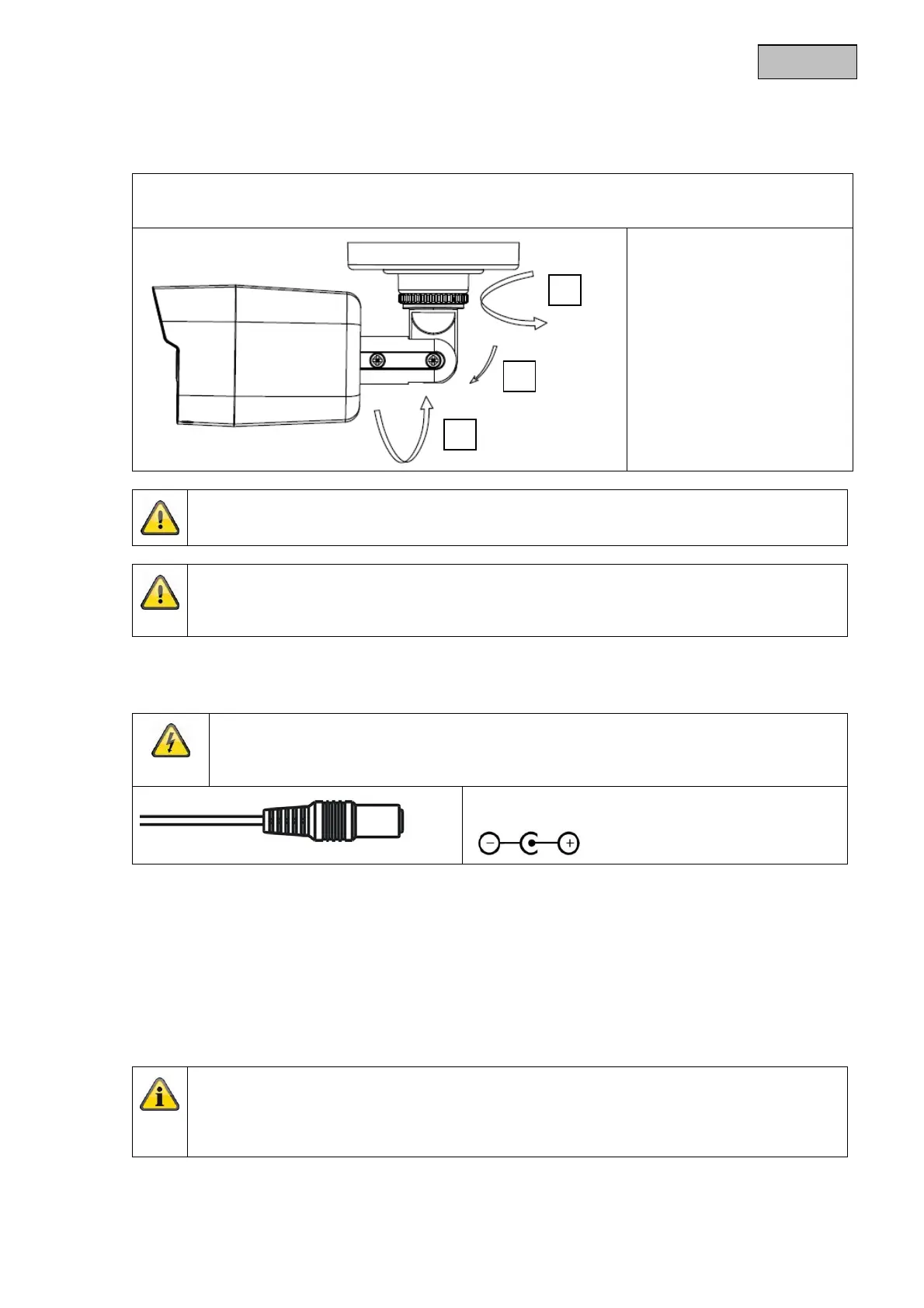Le telecamere richiedono una alimentazione di tensione di 12 V CC. Assicurarsi che la polarità