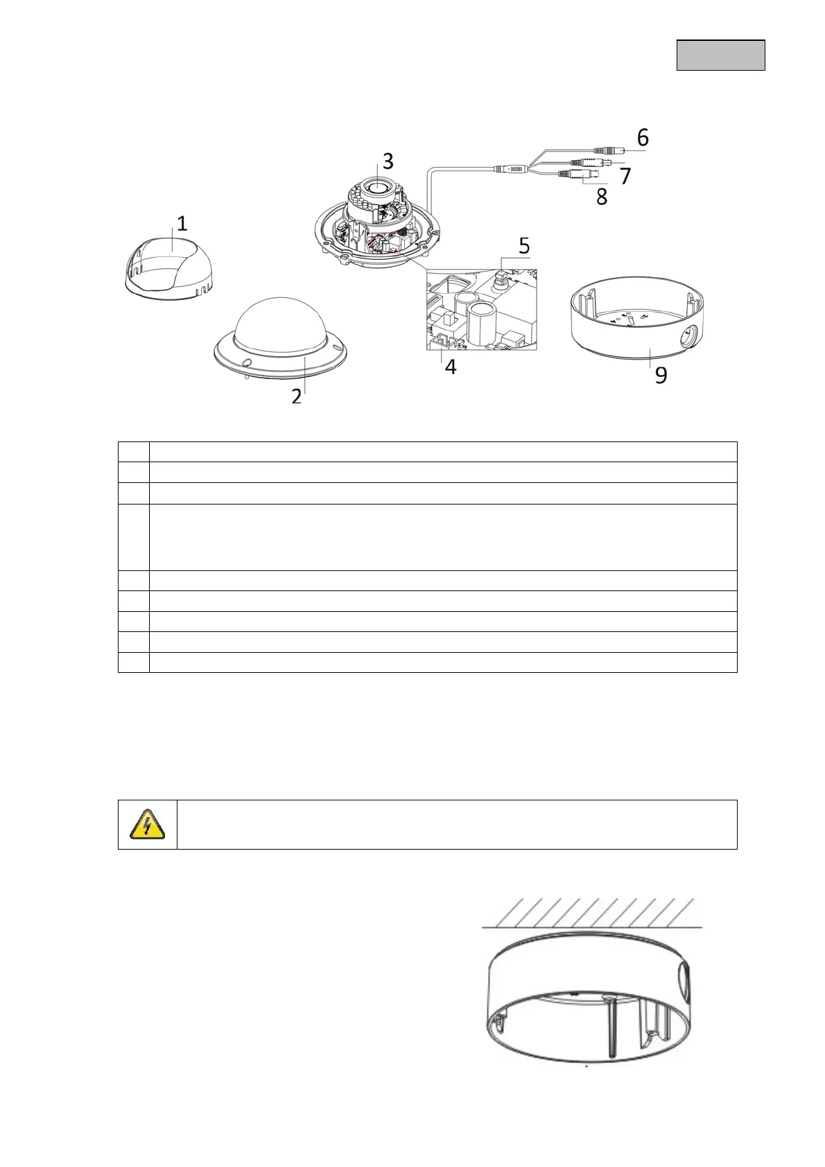 Under monteringen skal kameraet være afbrudt fra netspændingen.