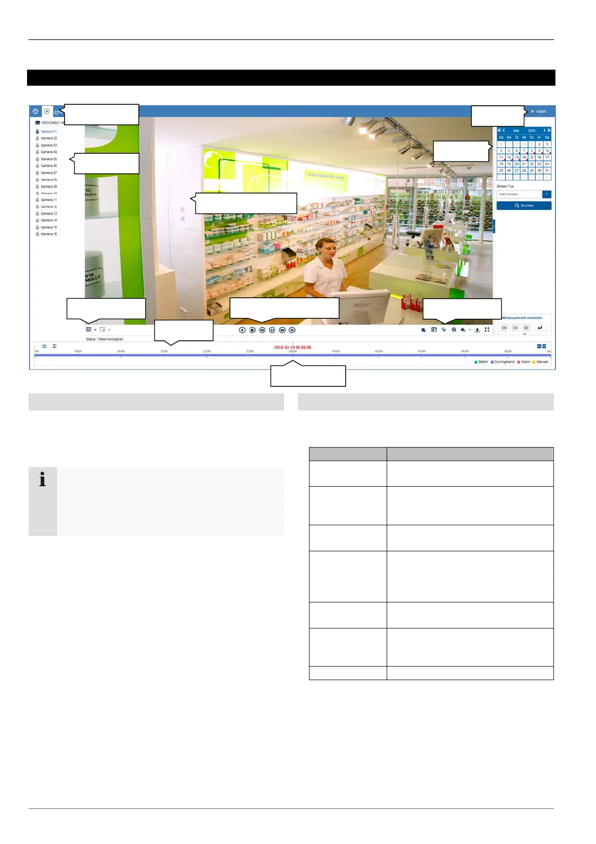 Die Wiedergabeansicht ist in folgende Funktionsbereiche