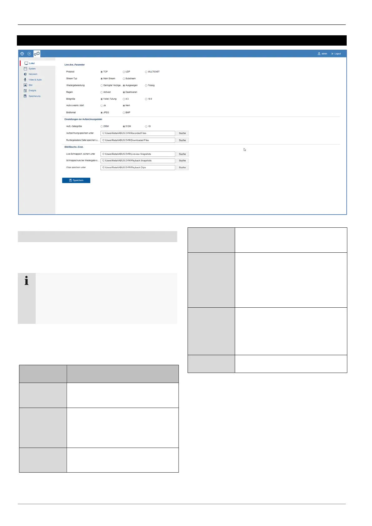 Einstellung: Lokal