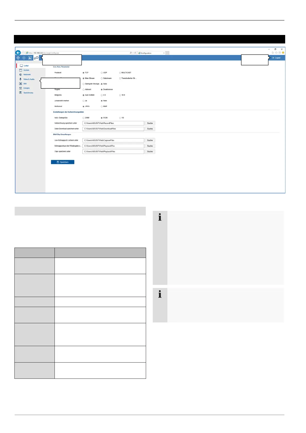 Storage Menu for configuring recording