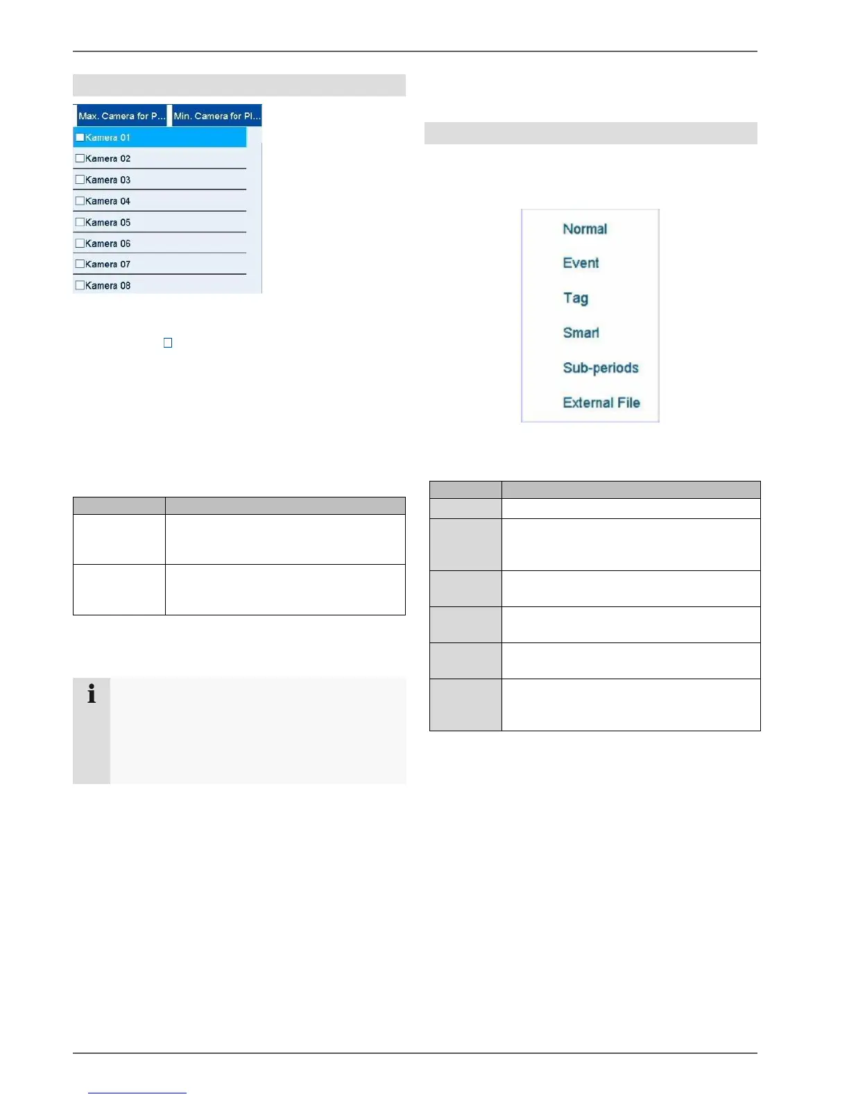 The camera list enables the selection of the recorded
