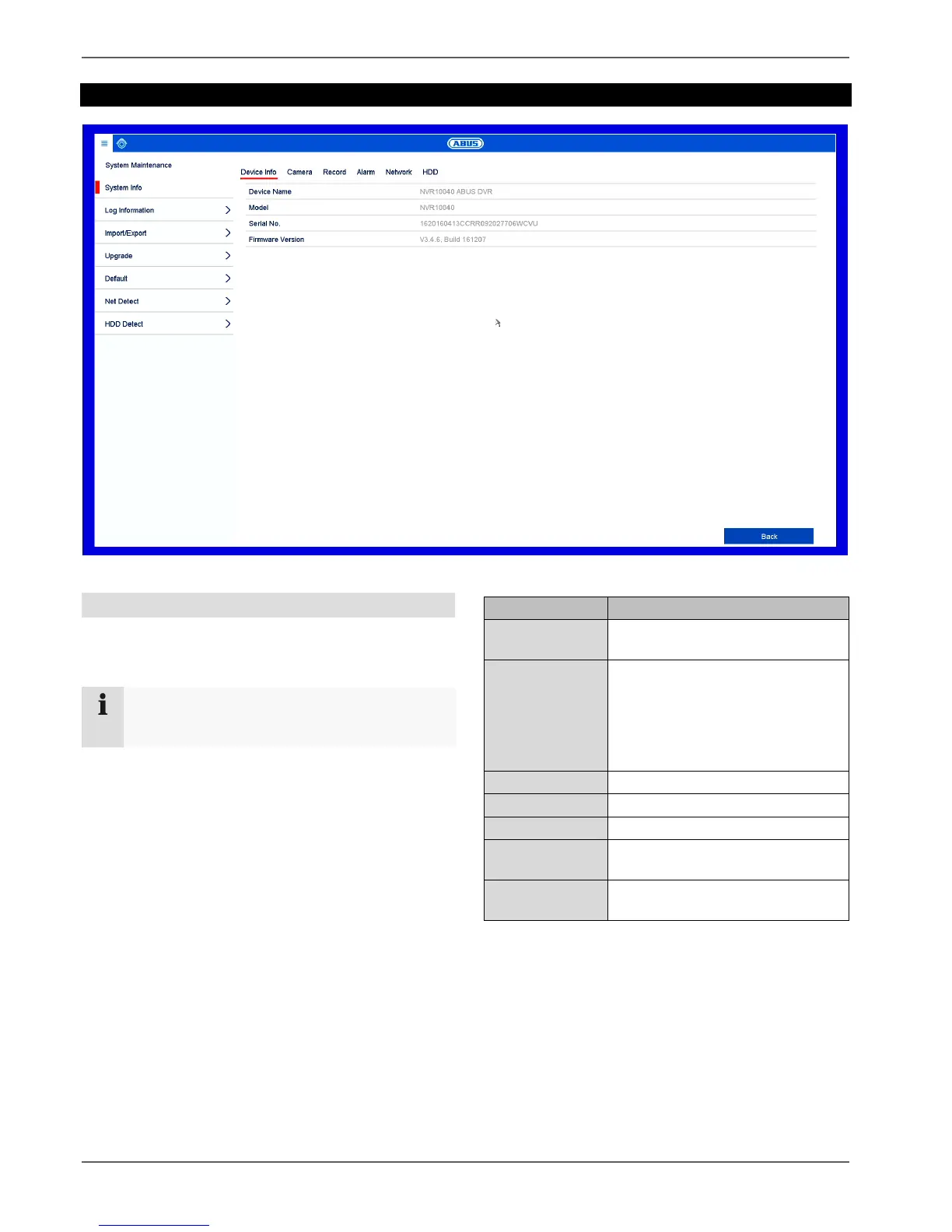 In this menu you can check important status information