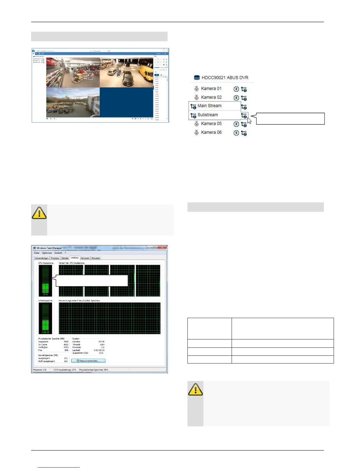resolution and bit rate of the individual camera stream,