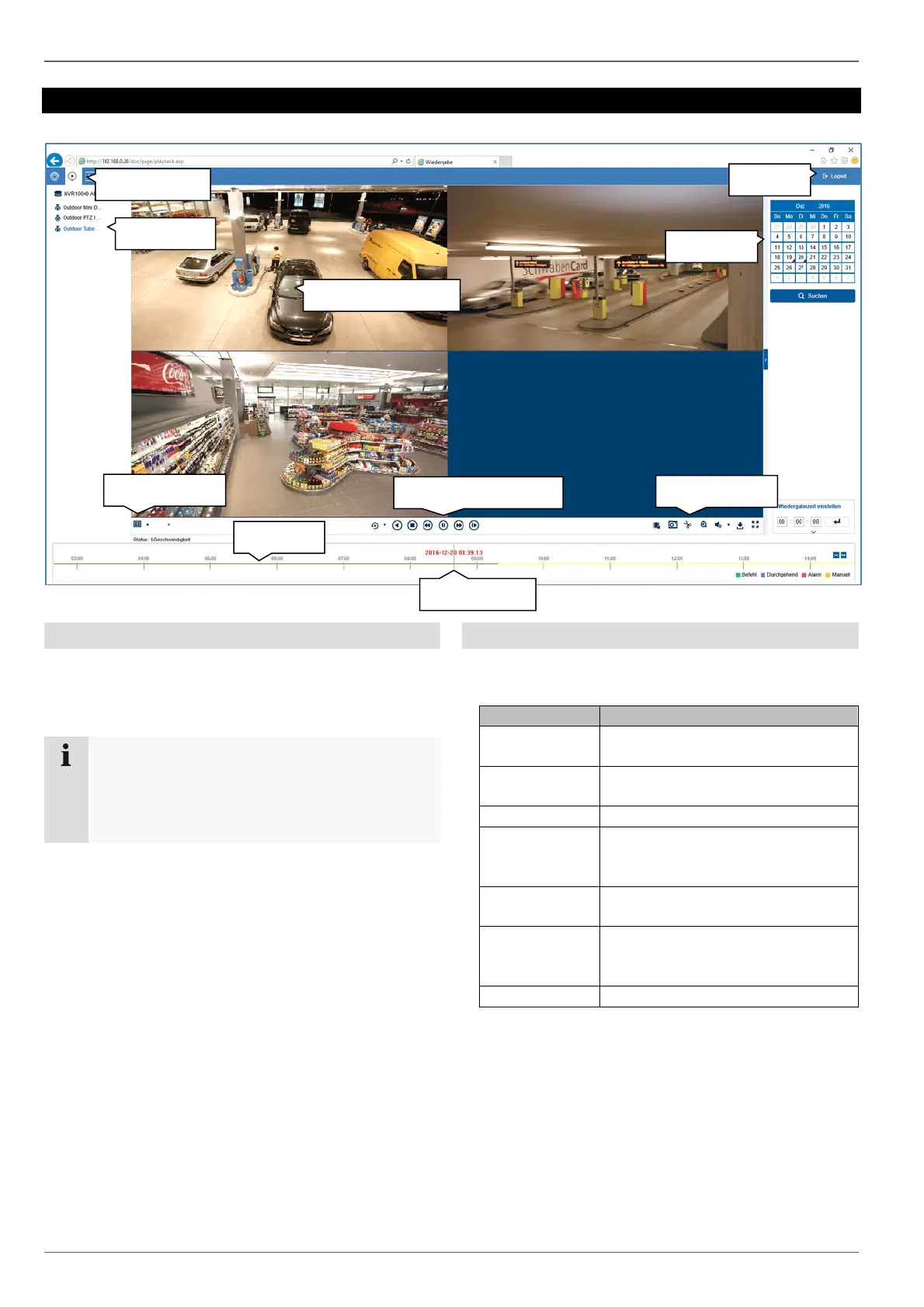 The playback view is divided into the following function
