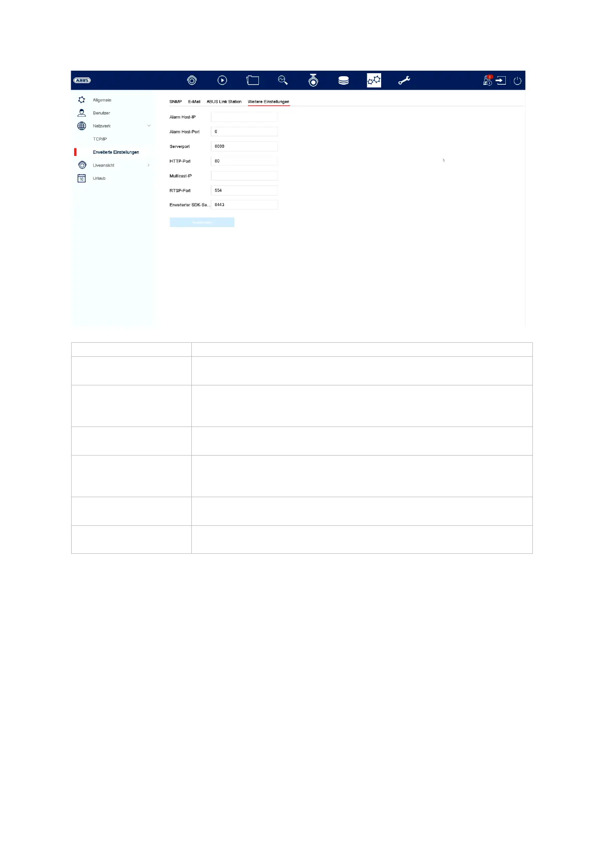 Server Port Port for data communication to ABUS CMS and iDVR App /