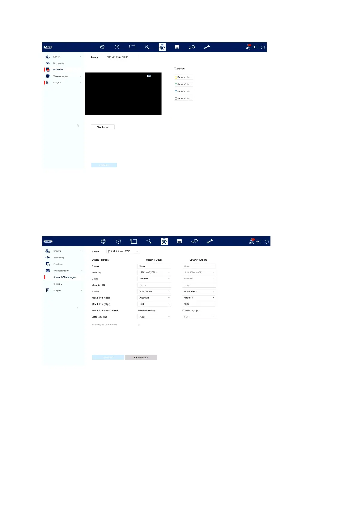 Hier kun je de videoparameters voor stream 1 en 2 aanpassen.