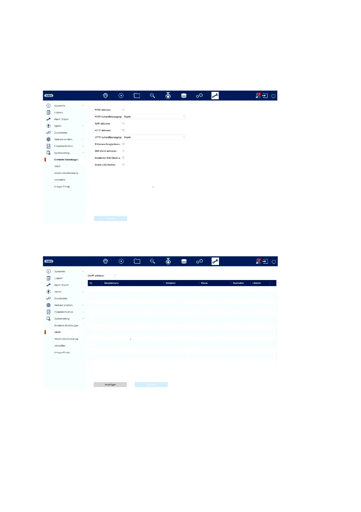 Hier kunt u de ONVIF-functie activeren en gebruikers aanmaken die toegang hebben