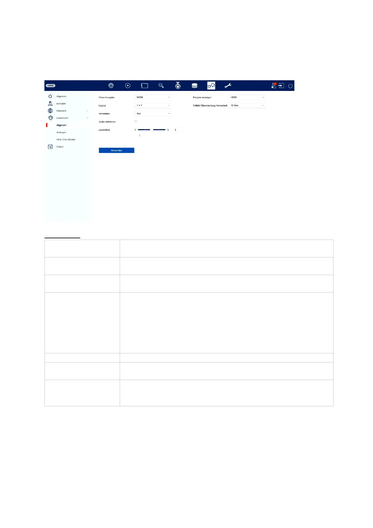 Im Menü Liveansicht legen Sie das Verhalten der lokalen Bildausgabe am Rekorder