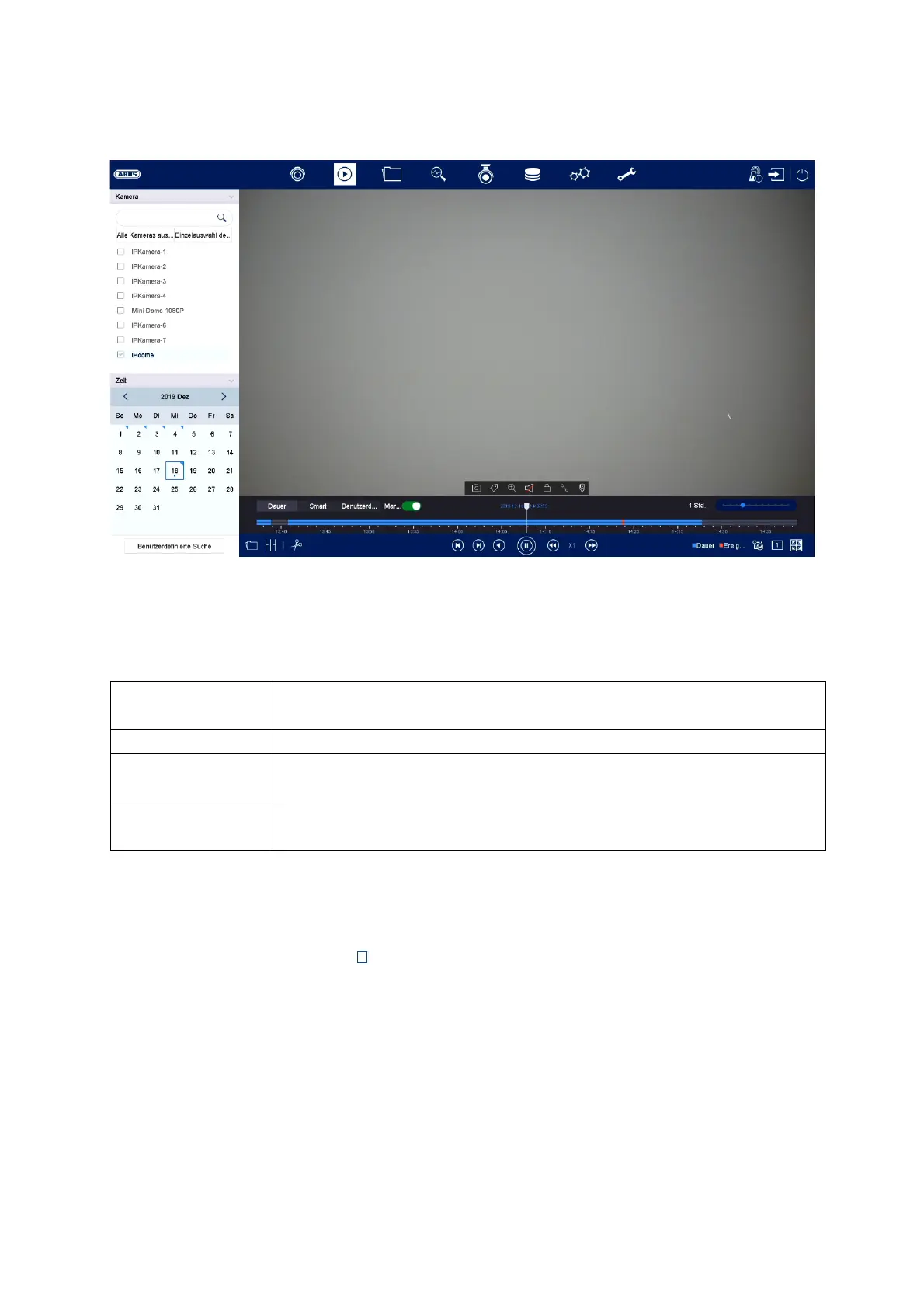 clicking on the selection fields in the list, several cameras can be played back