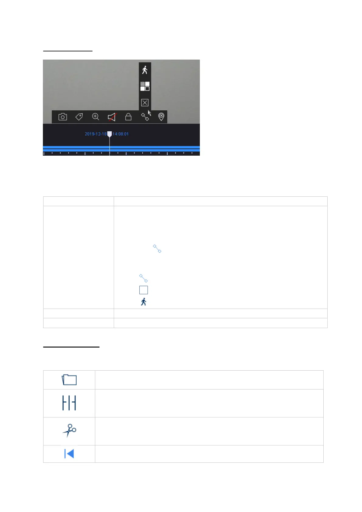 The following functions are available for selection below the timeline:
