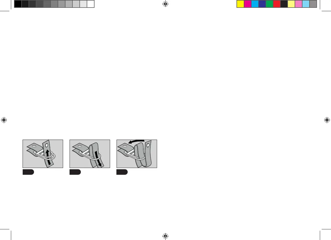 3. Zamocuj zatrzask na końcu paska podbródkowego po stronie pierścienia D, jak pokazano