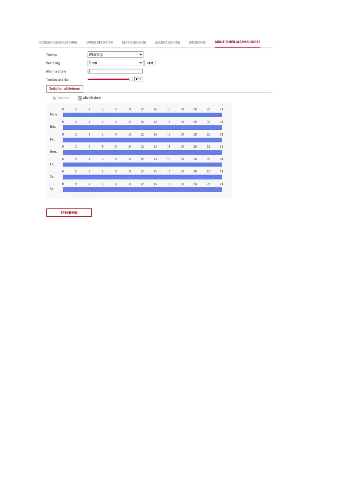 tidspunkter alarmudgangen skal være aktiv.