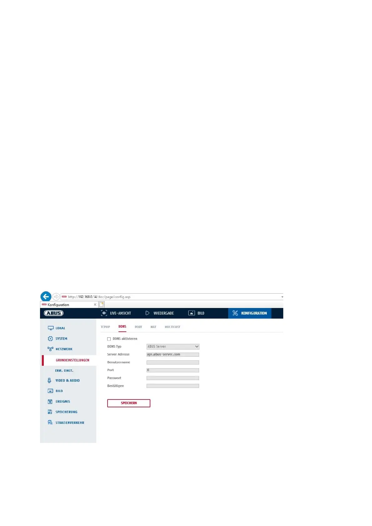 Server-Adresse: IP Adresse des Dienstanbieters (bei Option ABUS Server bereits ausgefüllt)