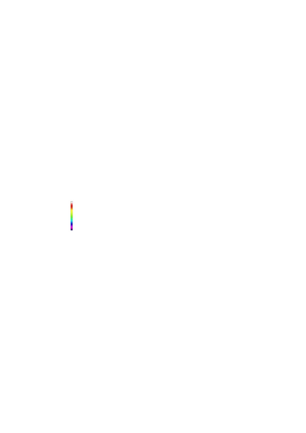 unterschiedliche Temperaturen mit unterschiedlichen Farben dargestellt.