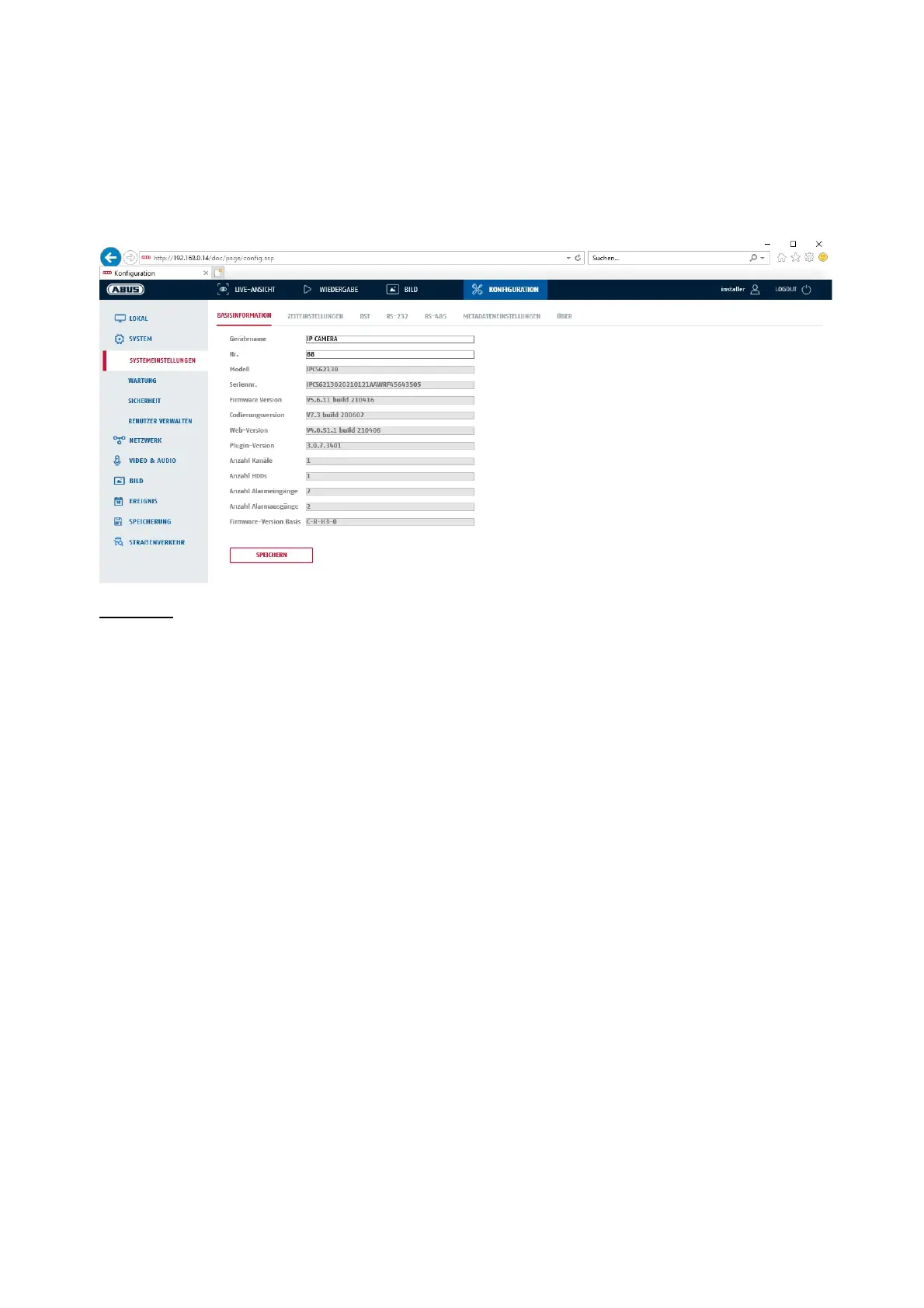 Here you can assign a device name for the camera. Click on "Save" to adopt this name.