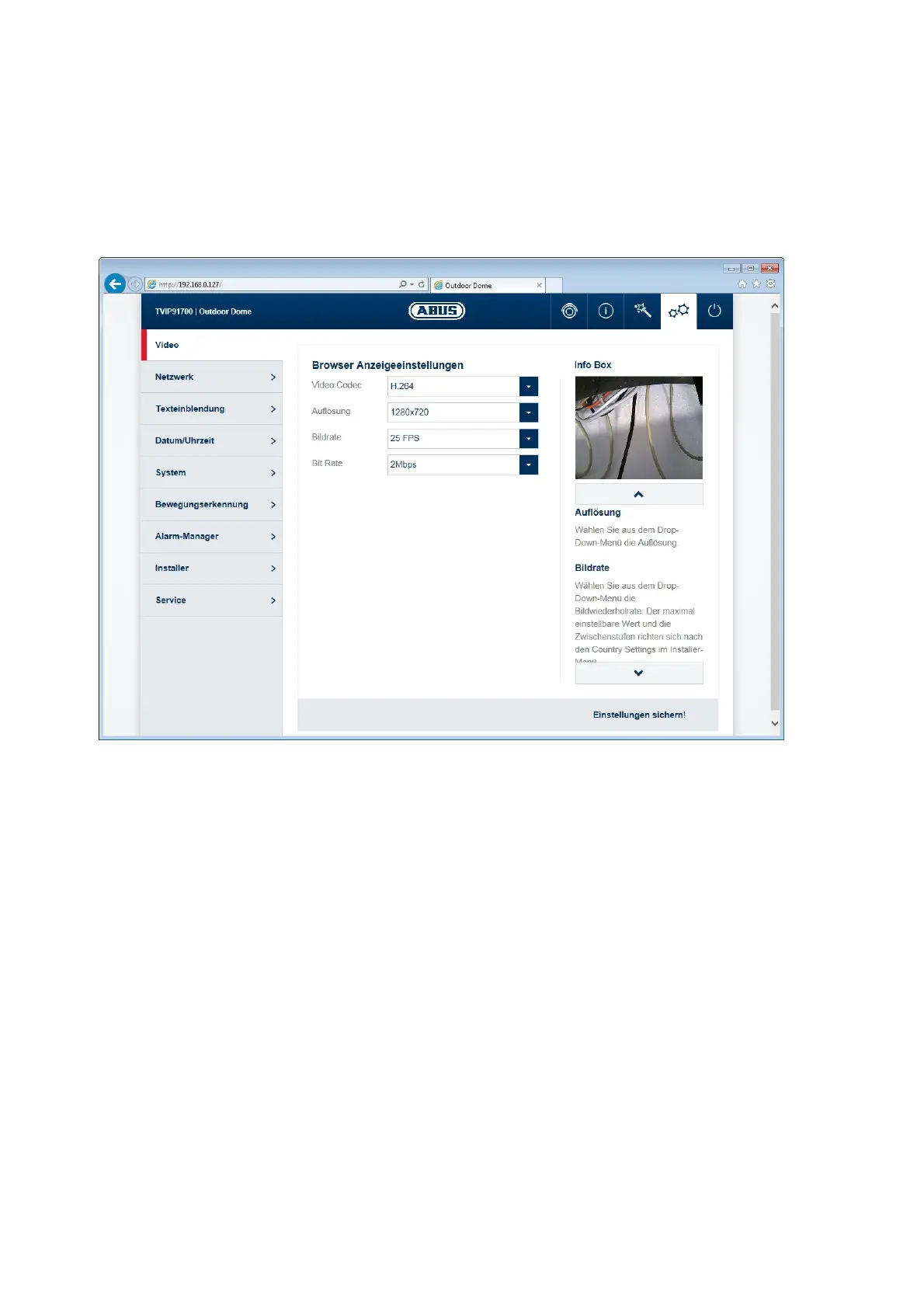Codec vidéo : sélection du codec vidéo. Les codecs disponibles sont H.264 ou MJPEG.