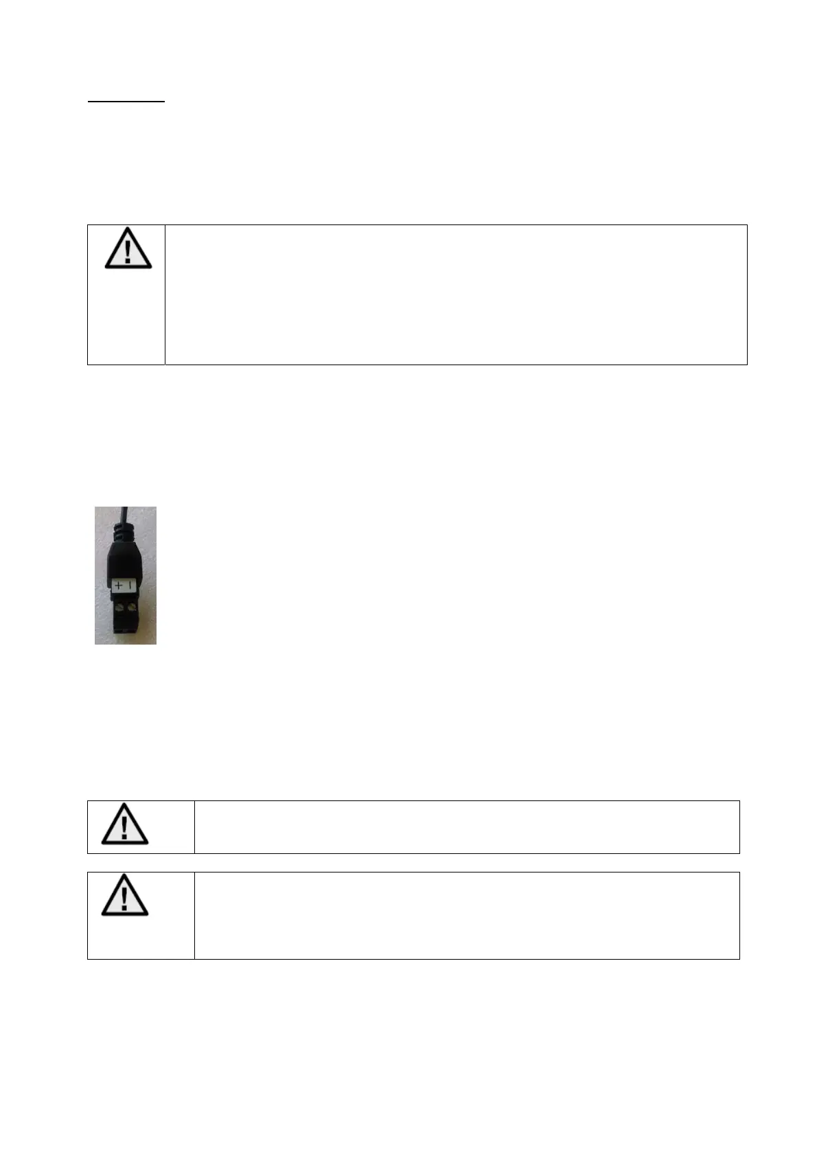 tilslutningen. Polariteten er mærket med "+" og "-".