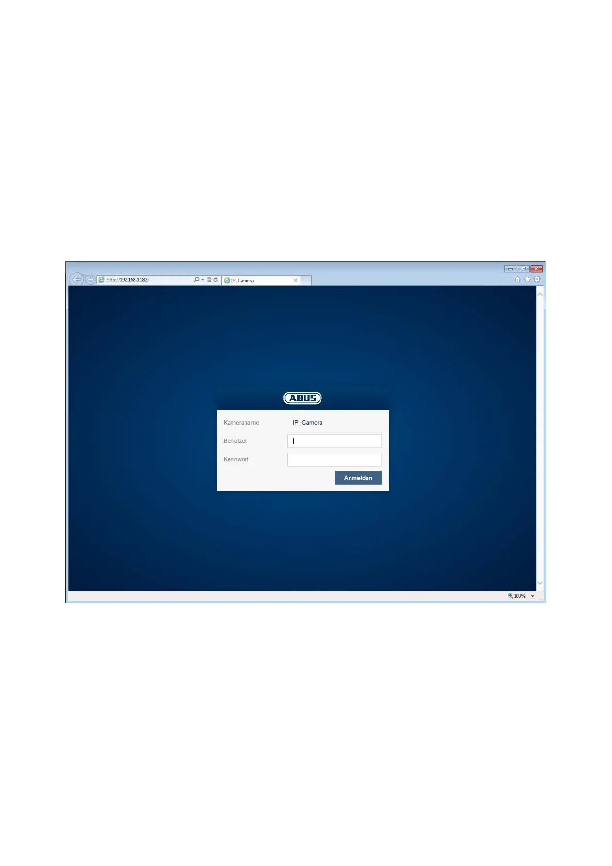 Når IP-adressen er indtastet i browserens adresselinje, og siden er åbnet, vises startsiden på