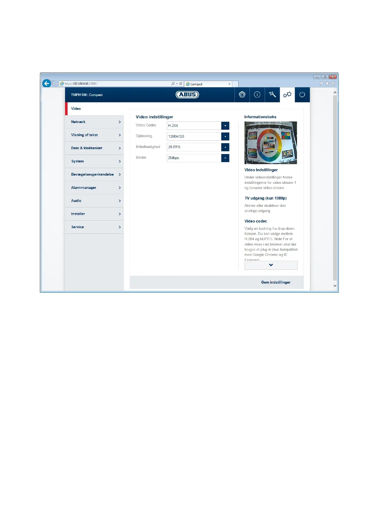visningen i internetbrowseren og optagelsen i optagelsesudstyret (indstillinger videostream 1).