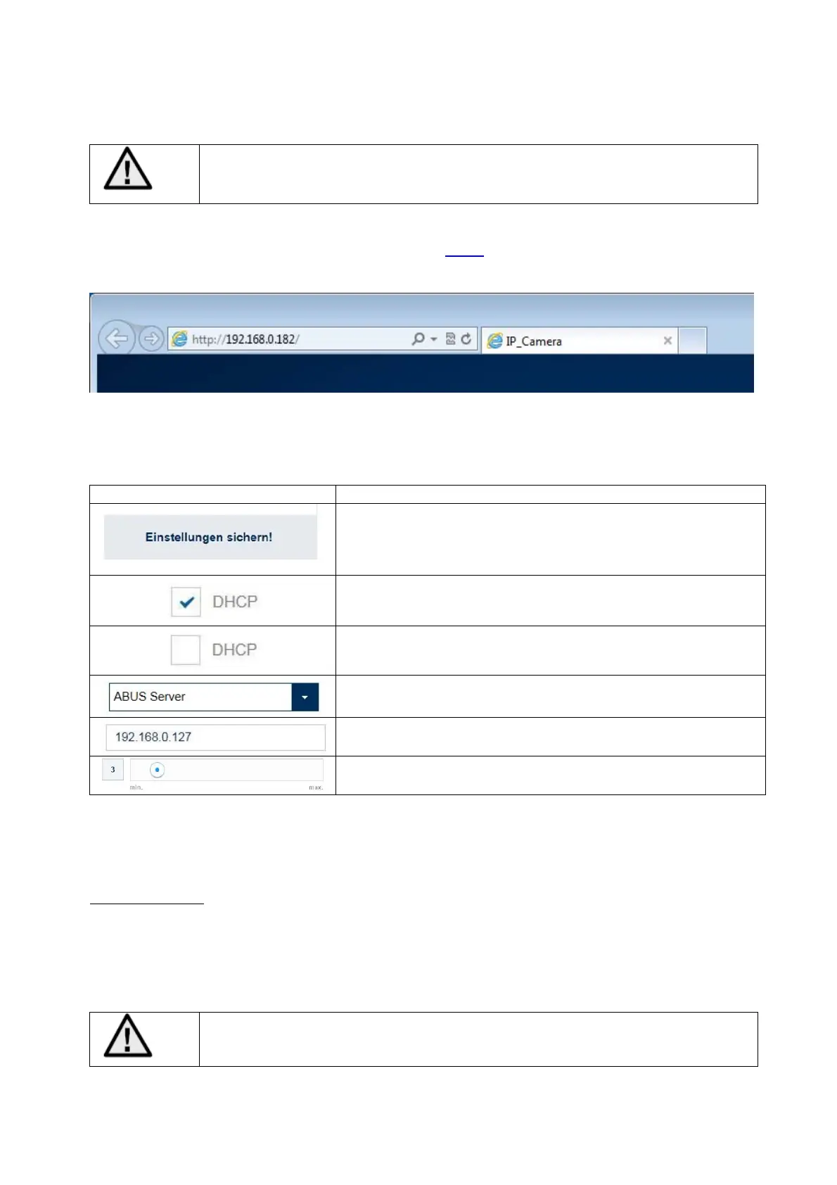 Geben Sie die IP Adresse der Kamera in die Adressleiste des Browsers ein (beim Internet-