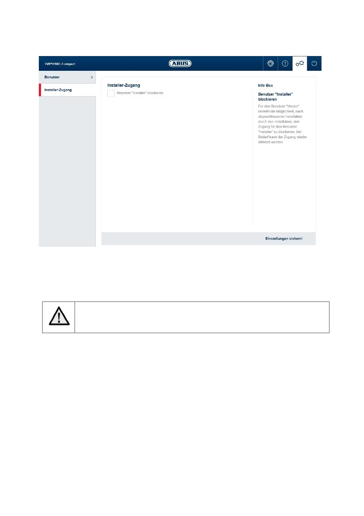 Blocca utente "installer": mettendo il segno di spunta viene bloccato l’accesso all’utente