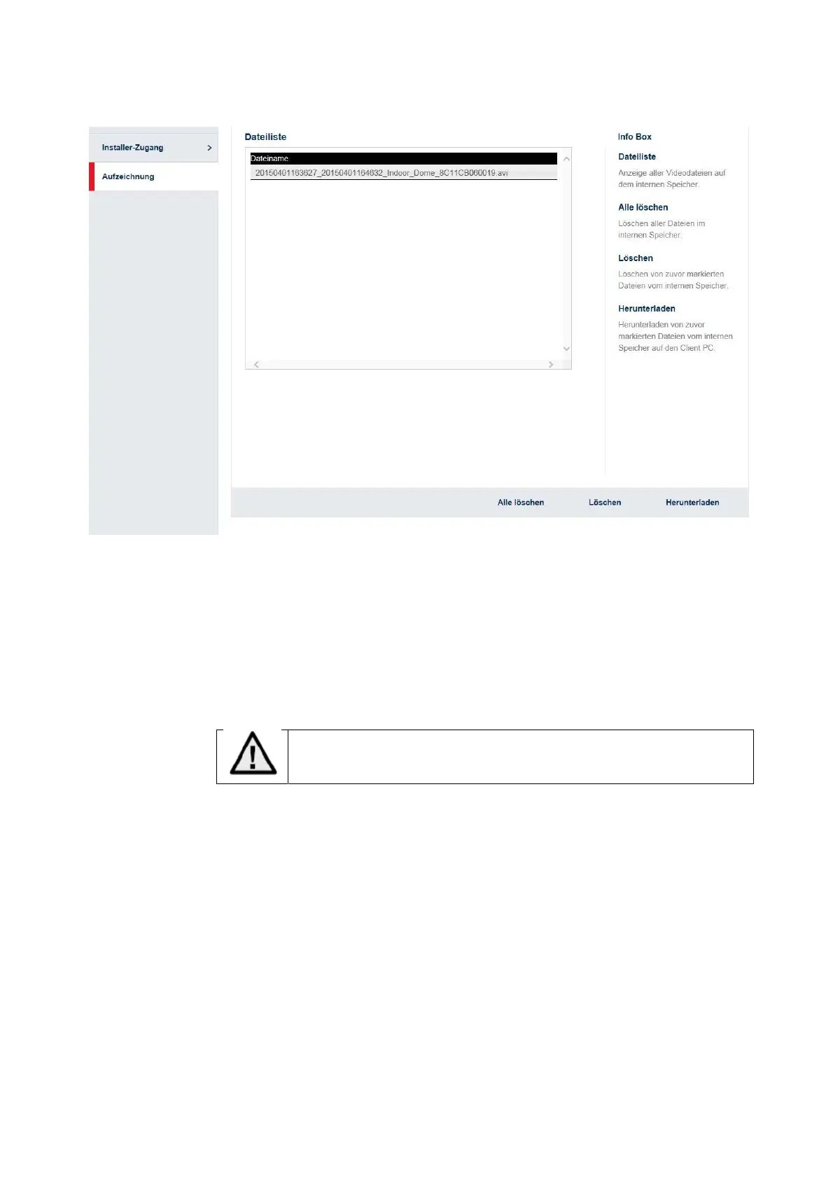 10.4.10 Visualizzazione/download delle registrazioni dalla memoria interna