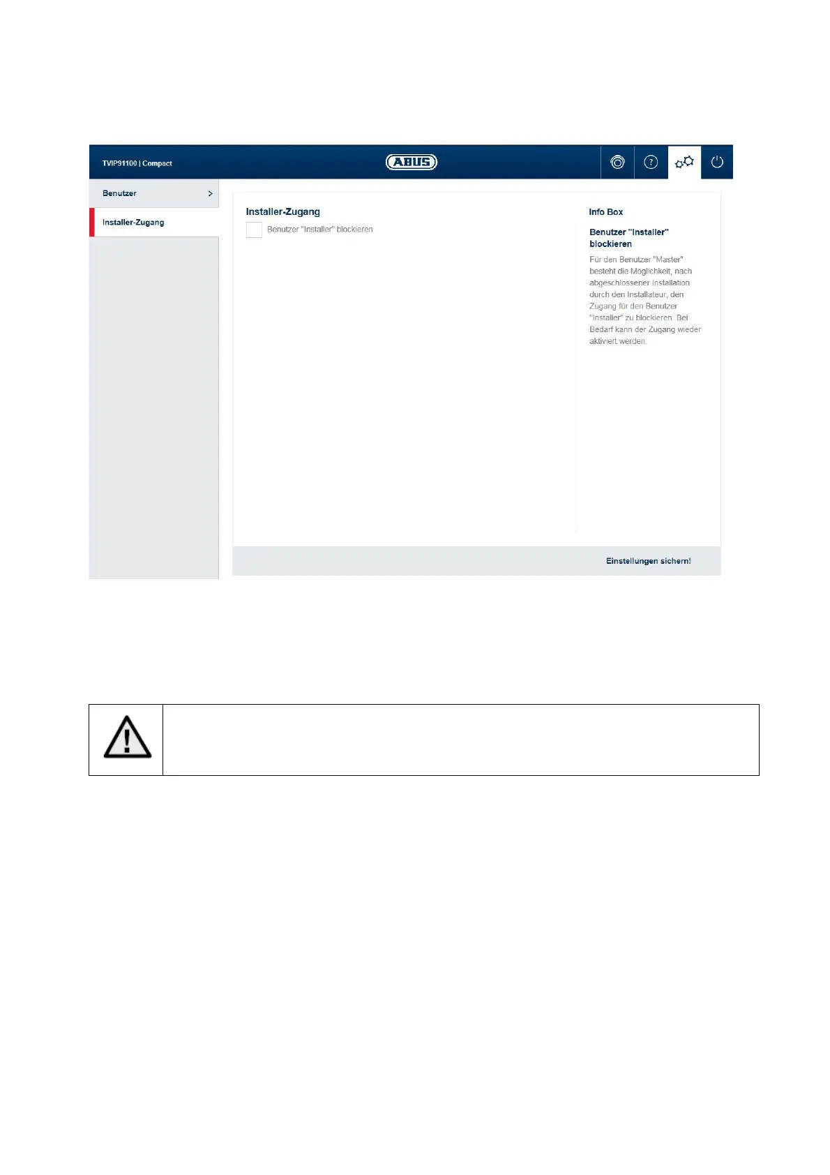 „Installer“ gesperrt. Nur der Benutzer “master” kann diesen