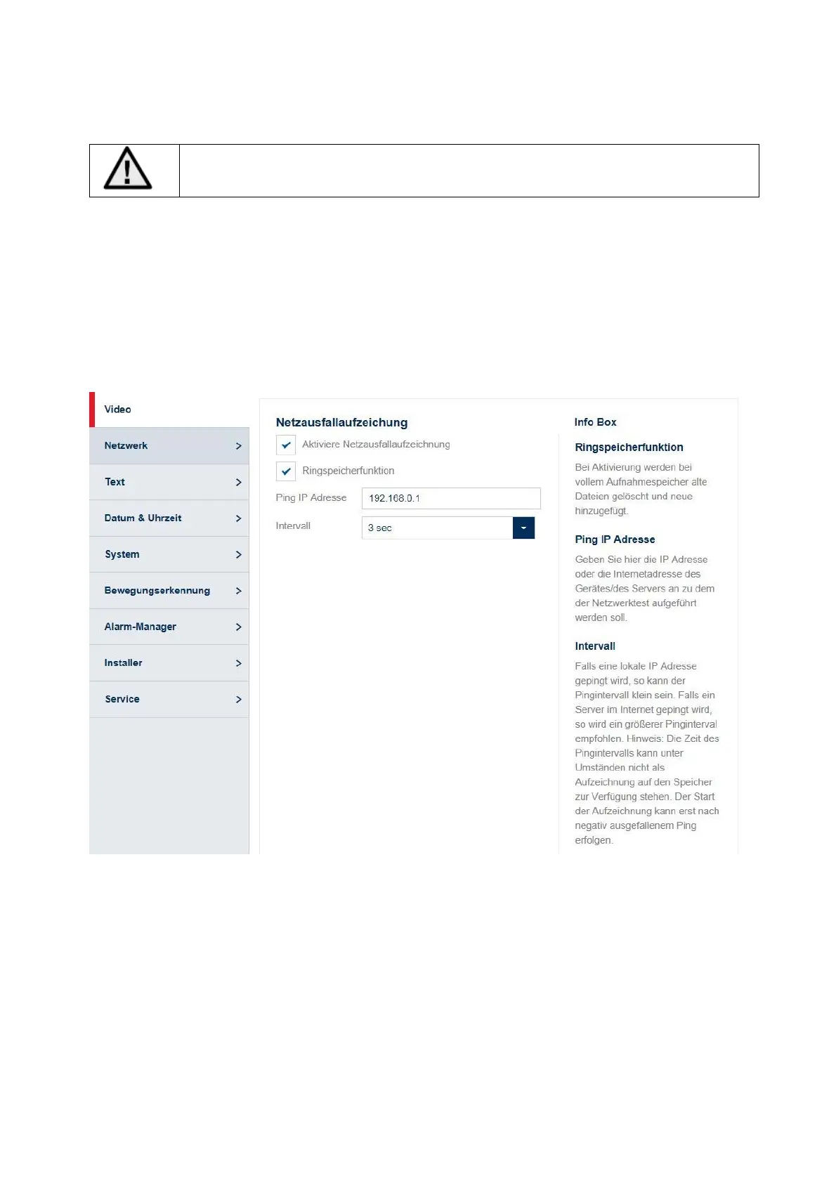 Durch diese Funktion ist es möglich, bei Ausfall des IP Netzwerkes Videodaten auf den internen