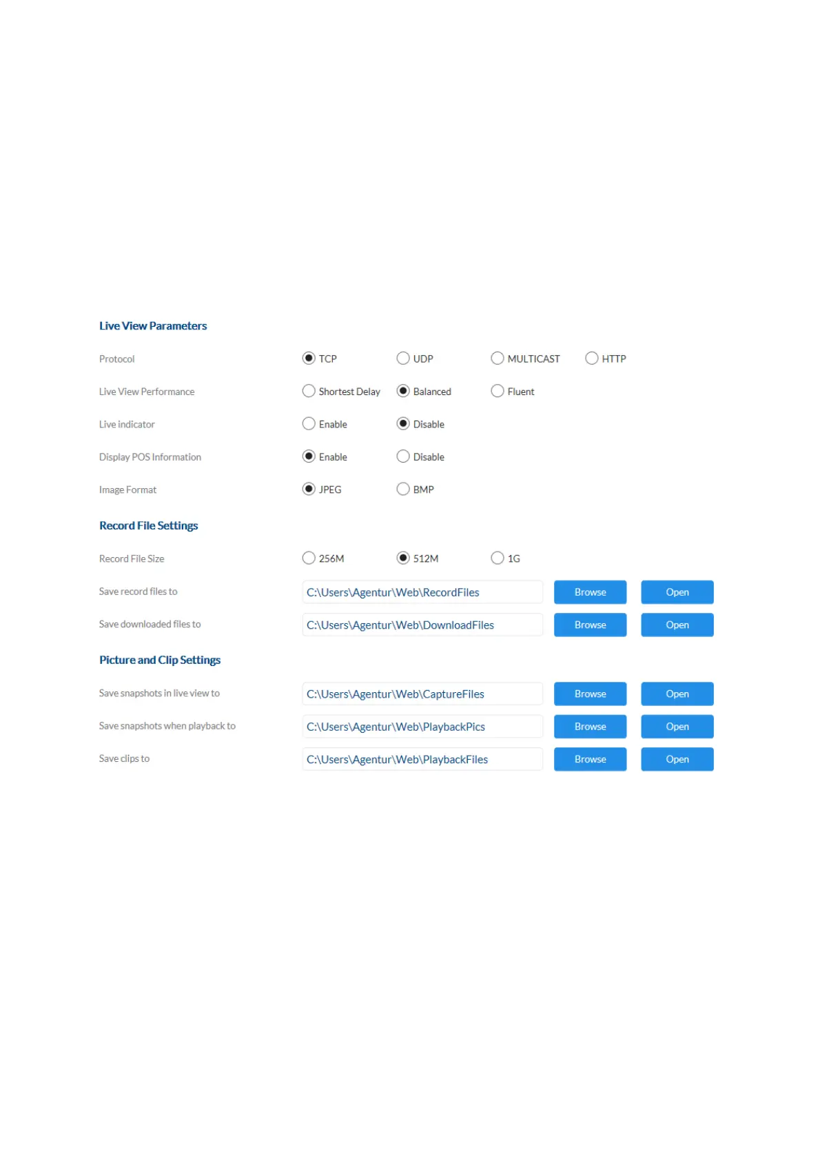 Save clips to: Select the path for saving video clips during playback.