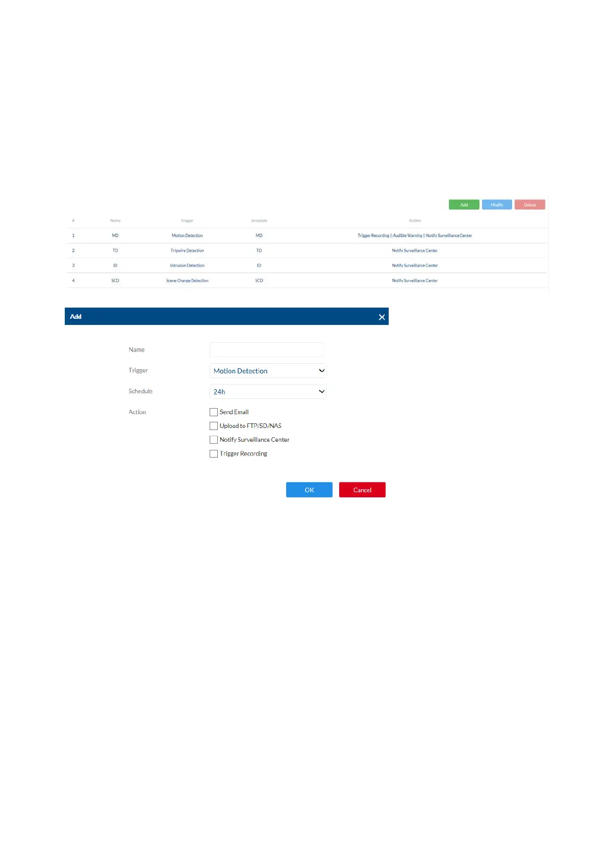 Trigger: an alarm rule consists of a trigger, a schedule for applying the rule