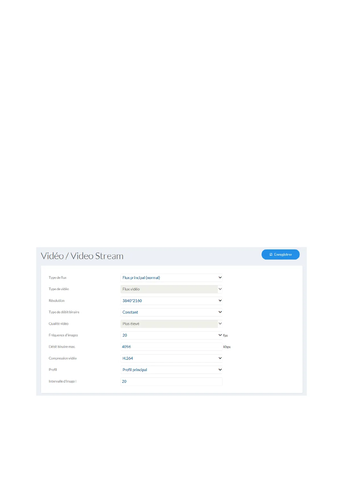 Résolution : Sélectionnez la résolution du flux vidéo.