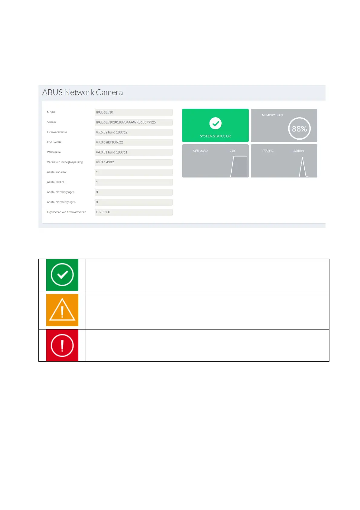 In het gedeelte rechtsboven wordt de algemene toestand van het systeem met een symbool