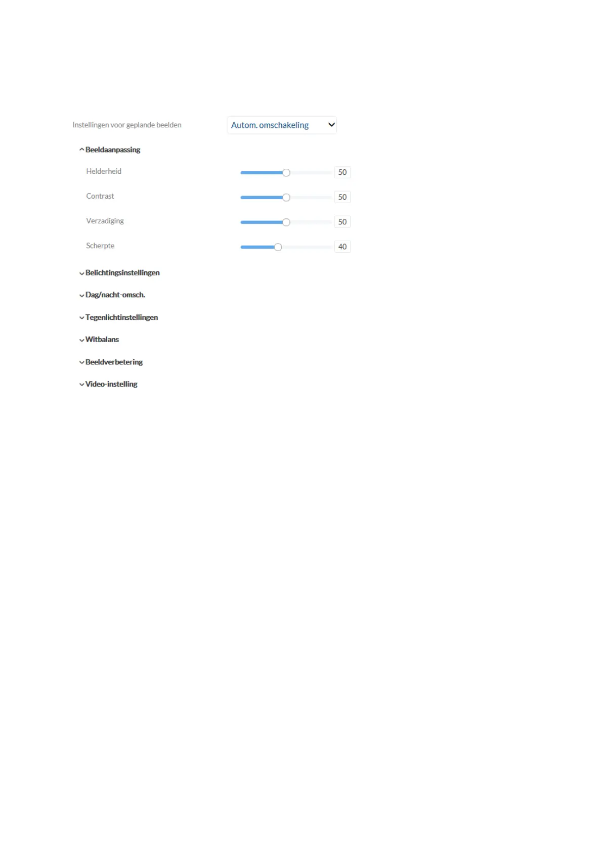 instellingen voor de beide scenario's in de camera ingesteld.