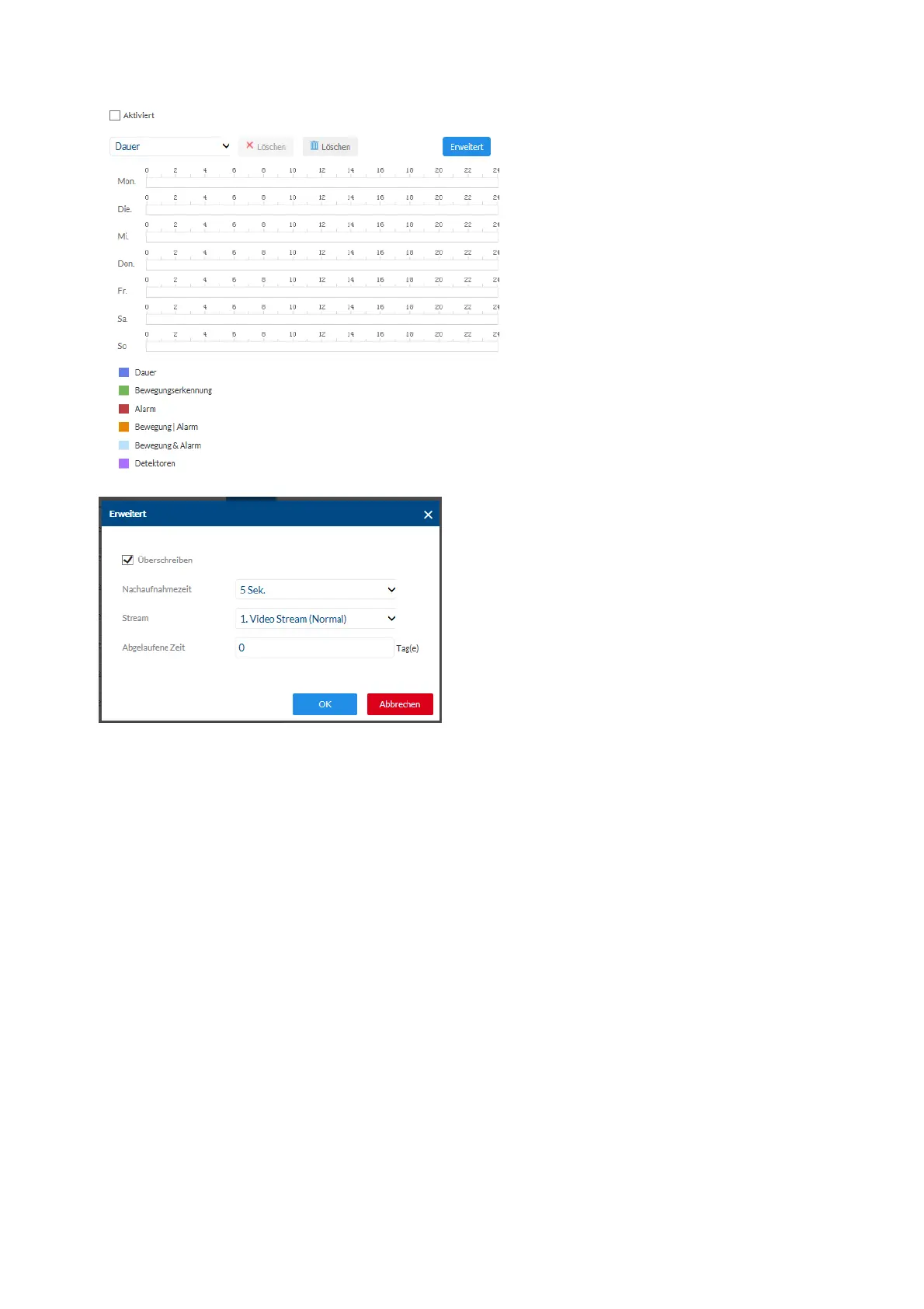 Interval: Hier bepaalt u de opslagintervallen (min. 1 seconde, max.