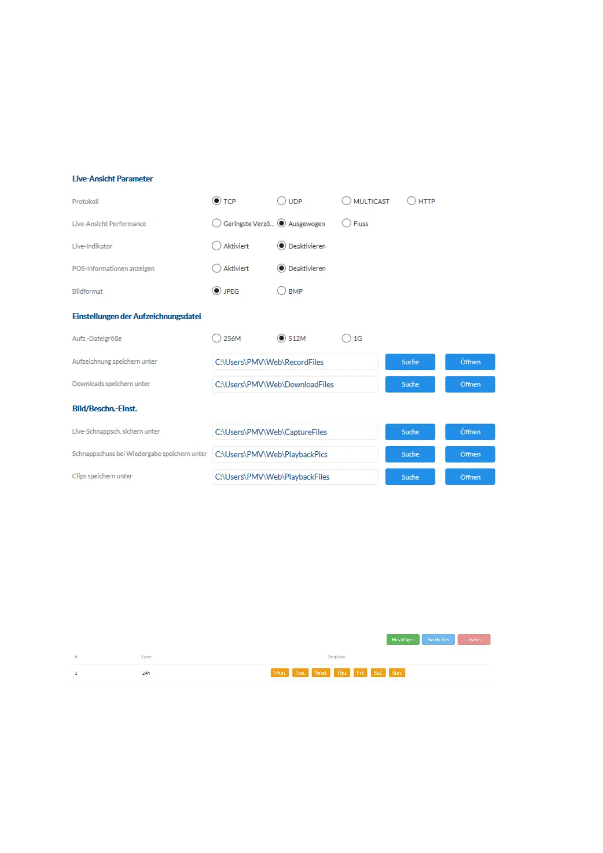 An dieser Stelle können bis zu 10 verschiedene Zeitpläne für die spätere Verwendung im