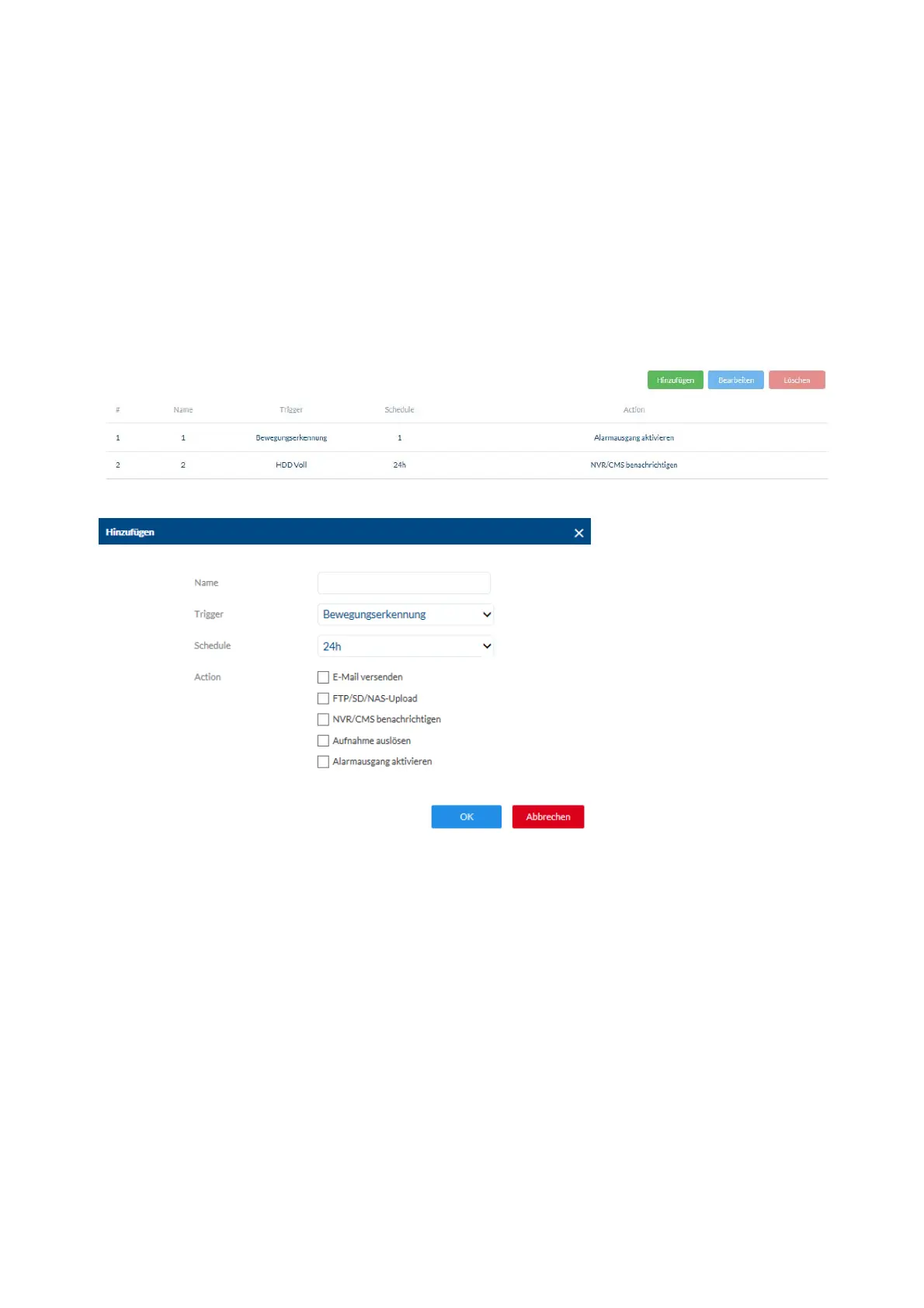 Aktion: Auf dieser Seite können eine oder mehrere Aktionen für die Regel
