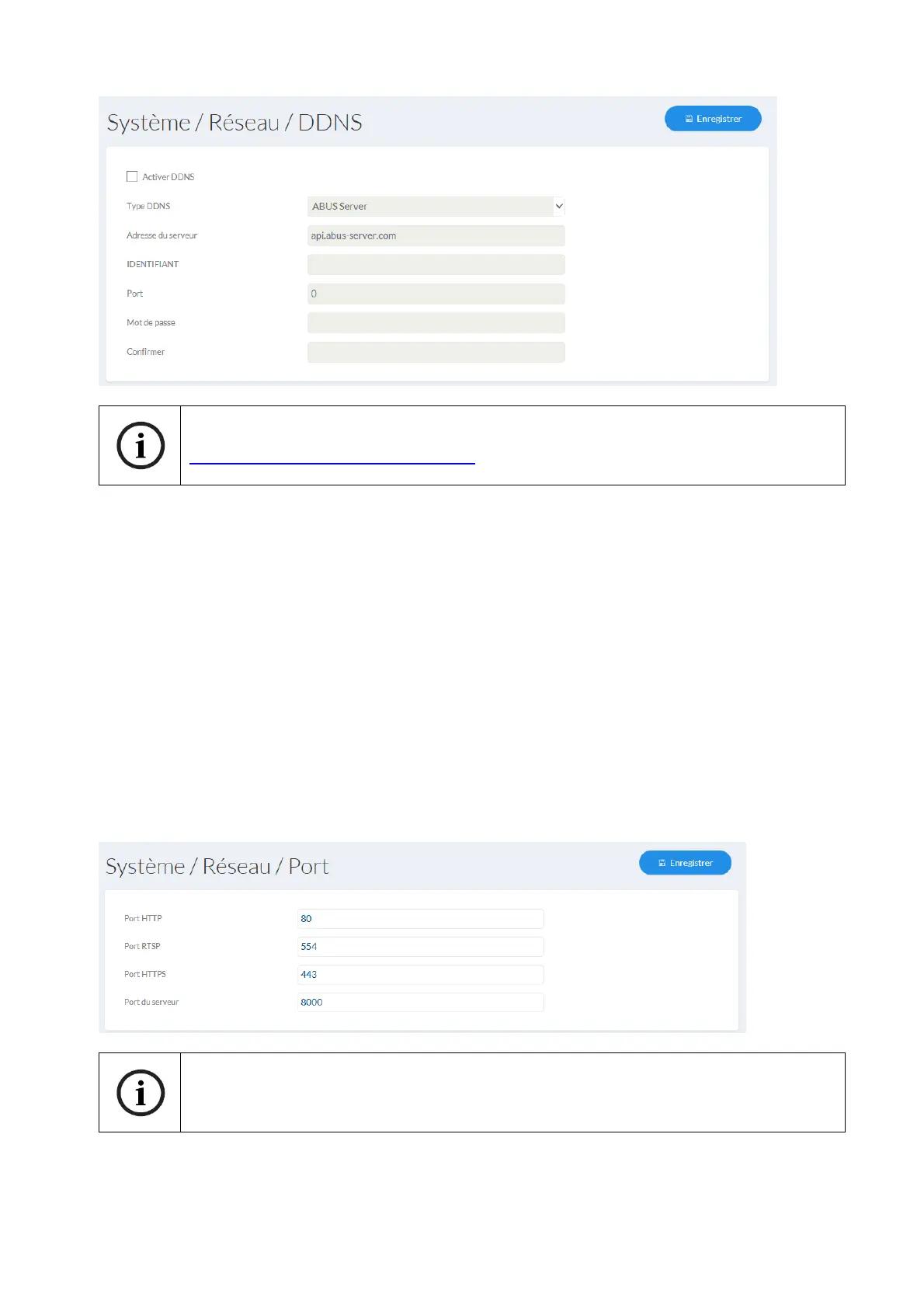 Port du serveur : Le port par défaut est le port 8000. Si plusieurs caméras IP se trouvent