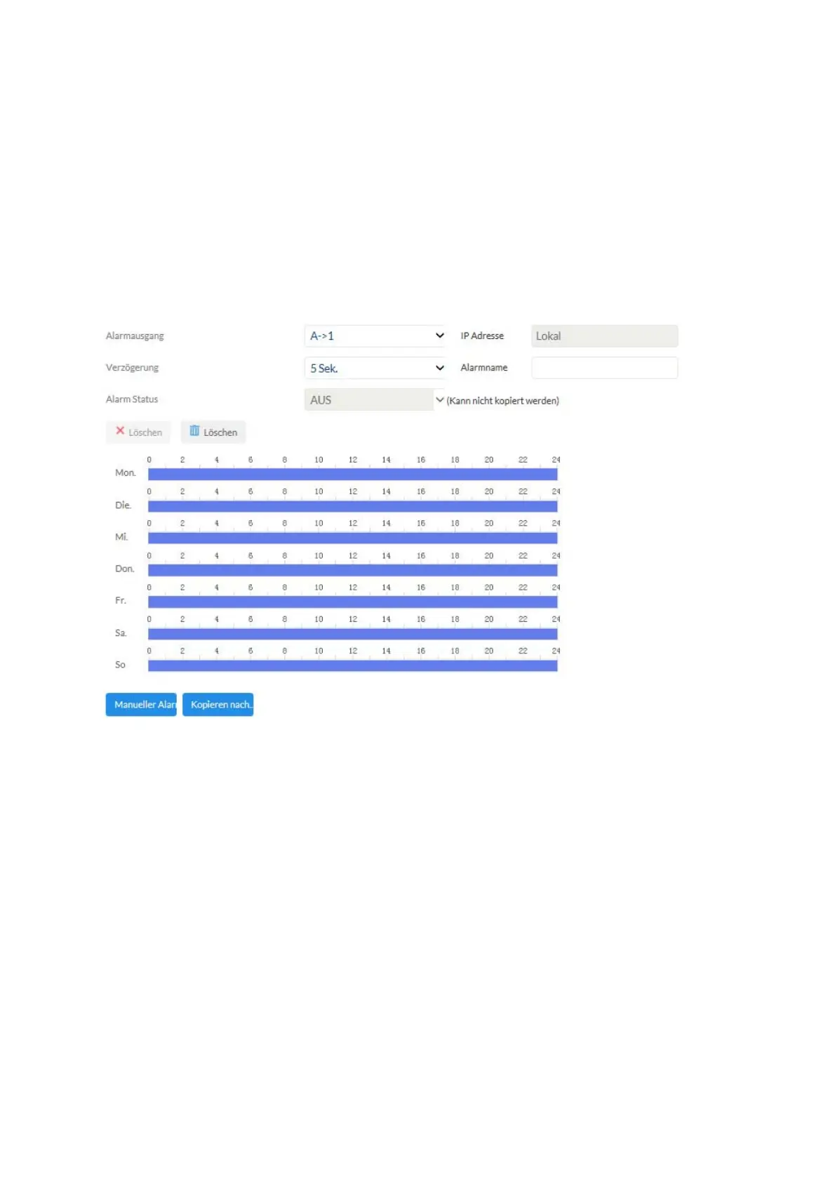Alarm output: Select the alarm output to be configured here (number depends on