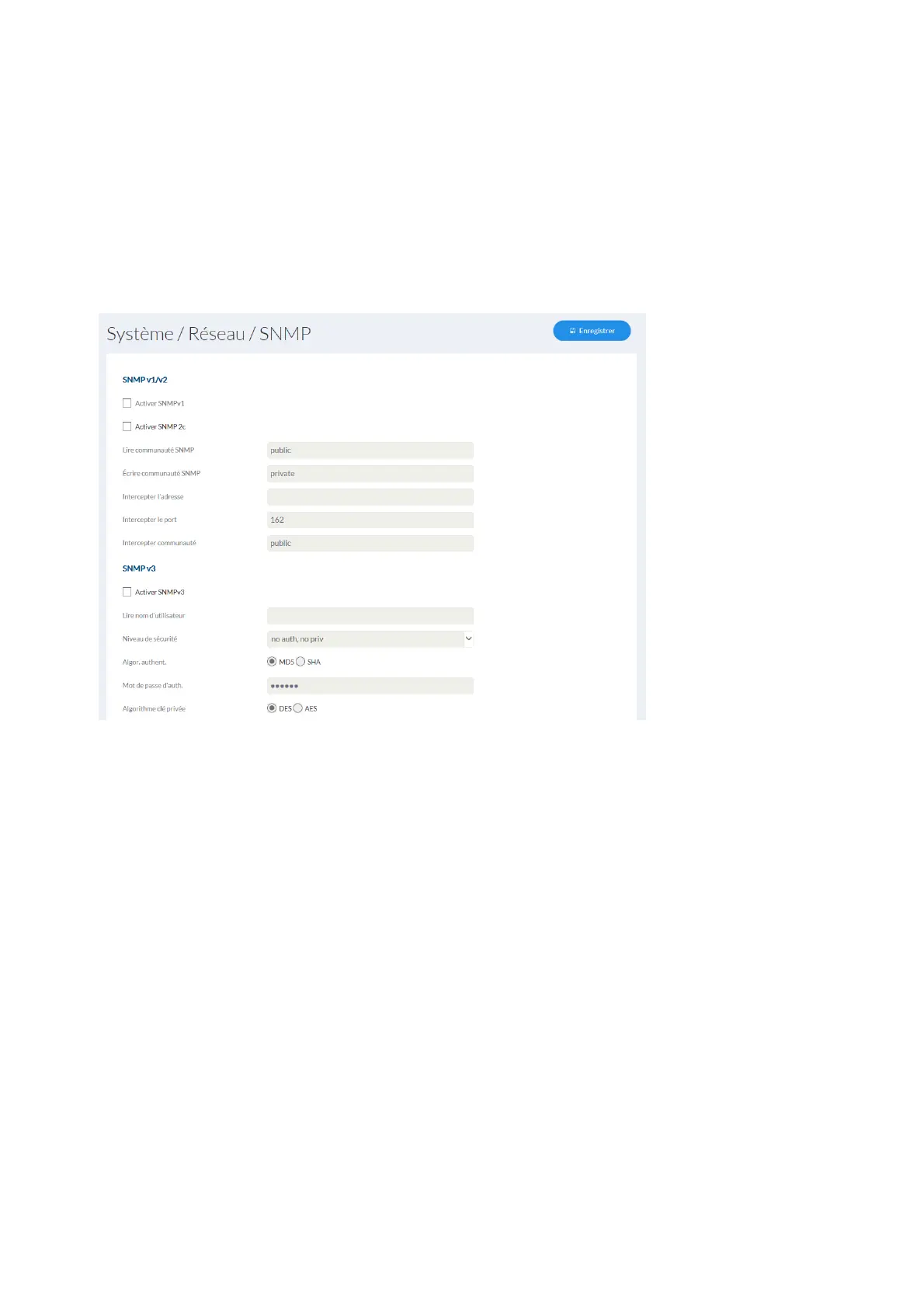 Algor. authent. : sélectionner l’algorithme d’authentification : MD5, SDA