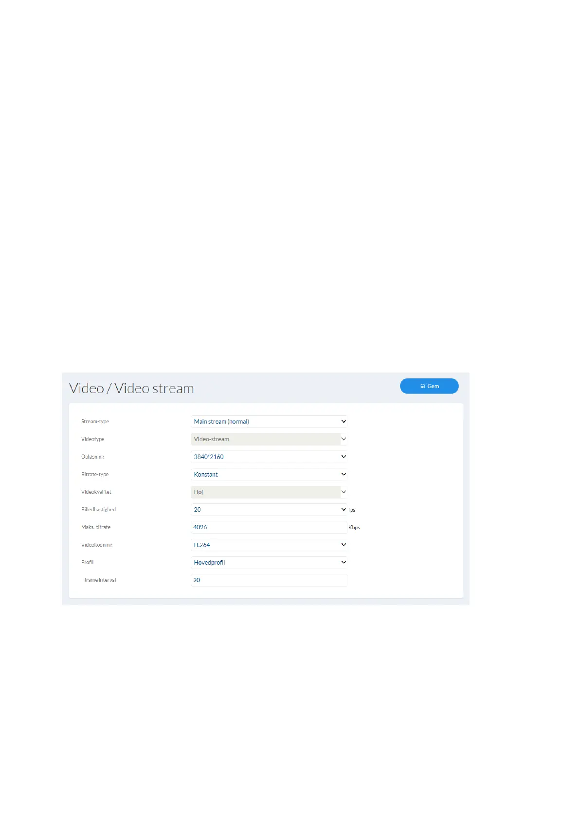 Stream: Vælg 1., 2. eller 3. videostream til konfiguration (stream 3 kun ved